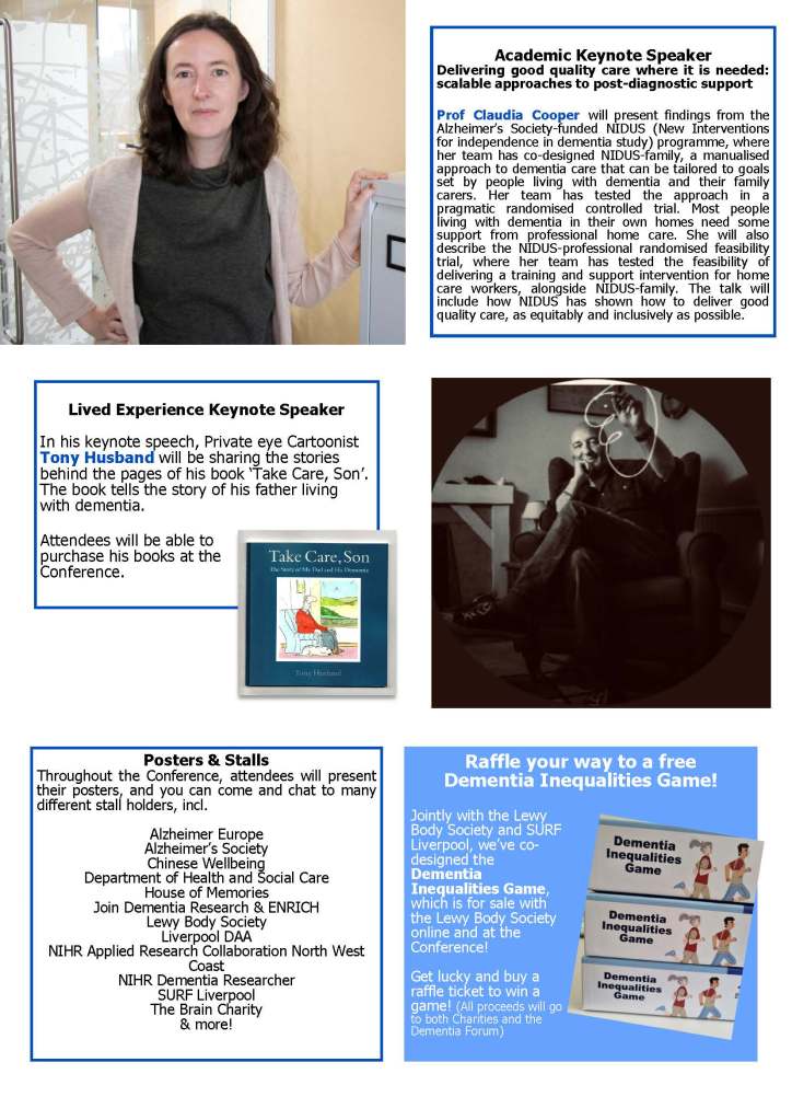 In his keynote speech, Tony Husband will be sharing the stories behind the pages of his book ‘Take Care, Son’. The book tells the story of his father living with dementia.
