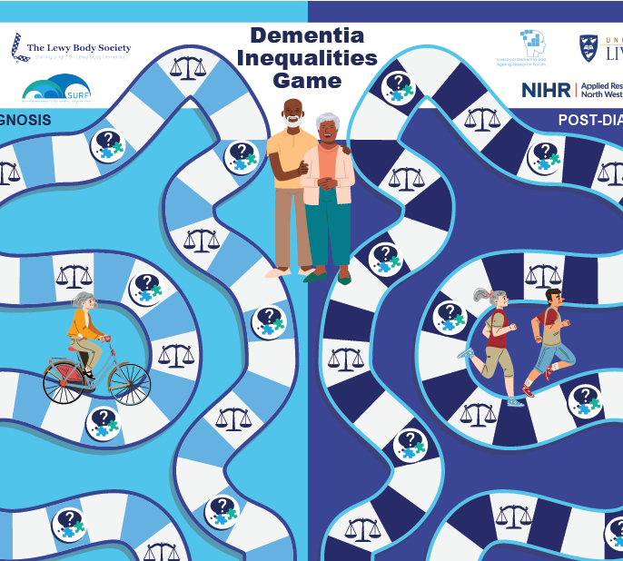Our co-designed Dementia Inequalities Game is now available via the Lewy Body Society webpage! The game was designed with people living with dementia, carers, care providers, and Third Sector representatives, and aims to raise awareness of and discussion about dementia and inequalities (diagnosis & post-diagnosis).